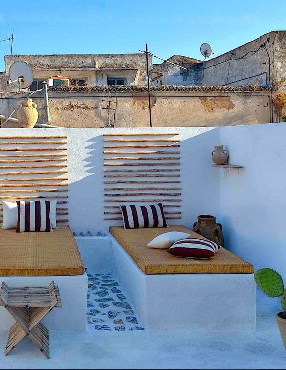 Per questo motivo Designmag vi guida nella scelta della praticità e invece noi di Biancorosso ti suggeriamo come idea per arredare il terrazzo, l’uso di tende leggere e svolazzanti, possibilmente di un colore chiaro e in lino. Otterrai in questo modo un effetto ‘notte nel deserto’. Immagina, chiudi gli occhi e inizia a contare le stelle!