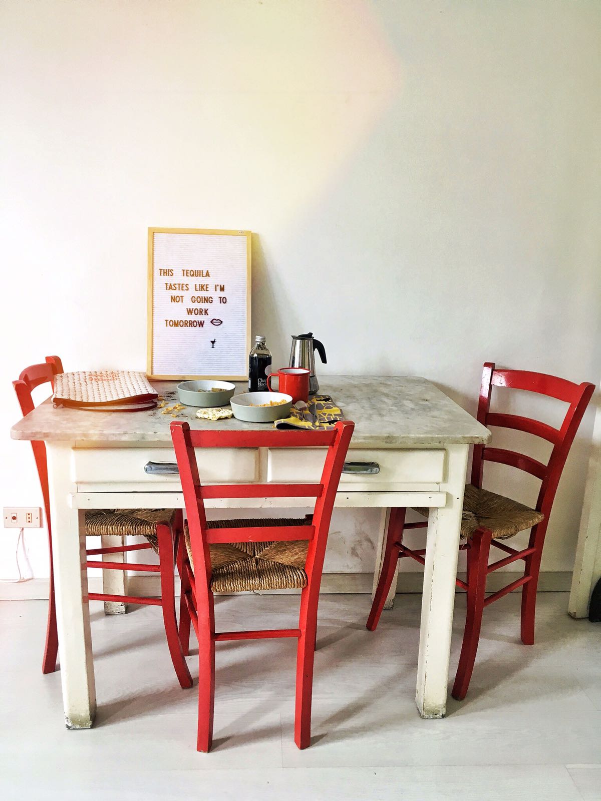 E così fa anche la bellissima credenza vintage, regina indiscussa – o quasi (ndr frigorifero Smeg) – perfettamente a suo agio in questo ambiente che unisce le linee pulite del design scandinavo e il calore del modernariato.